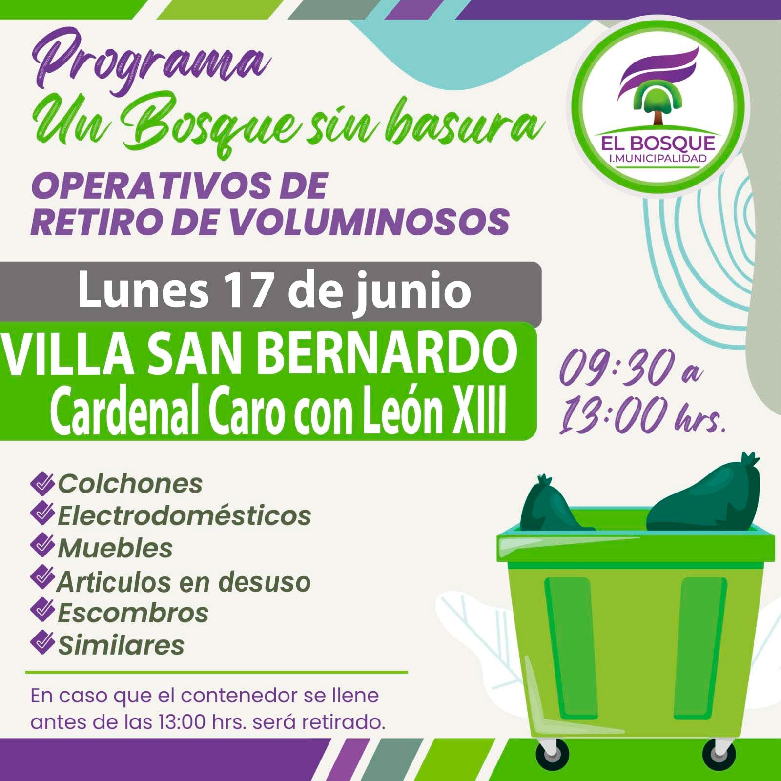 Vecinos: recuerden que hoy, lunes 17 de junio desde las 09:30 hasta las 13:30 horas o hasta que se llene habrá un contenedor en Cardenal Caro con León XIII, para que boten lo que ya no les sirva.